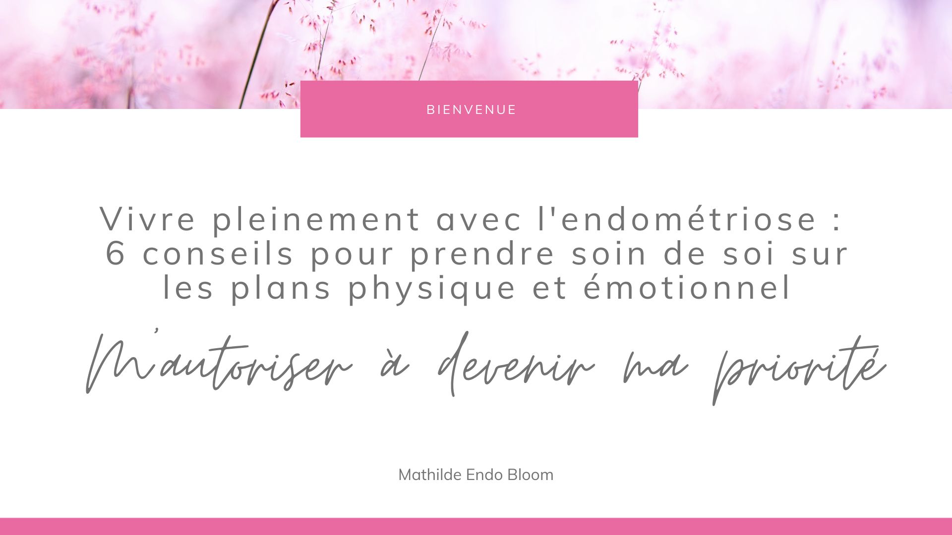 Tu souffres d’endométriose et cherches des solutions pour mieux gérer ton quotidien ? Rejoins-moi pour une conférence en ligne exceptionnelle : "Vivre pleinement avec l'Endométriose : 6 conseils pour prendre soin de soi sur les plans physique et émotionnel". Cette conférence est spécialement conçue pour t’aider à devenir ta priorité, malgré l’endométriose.